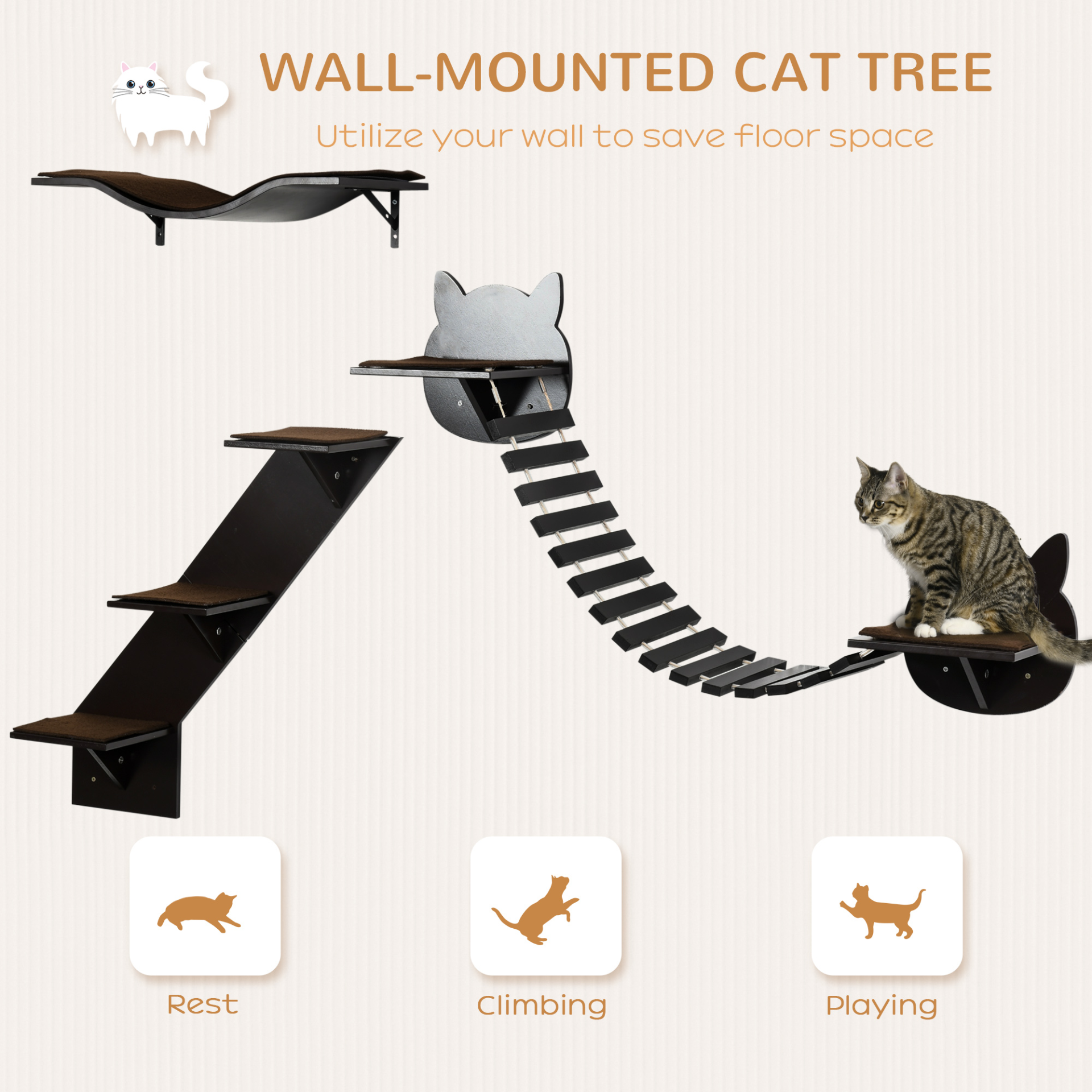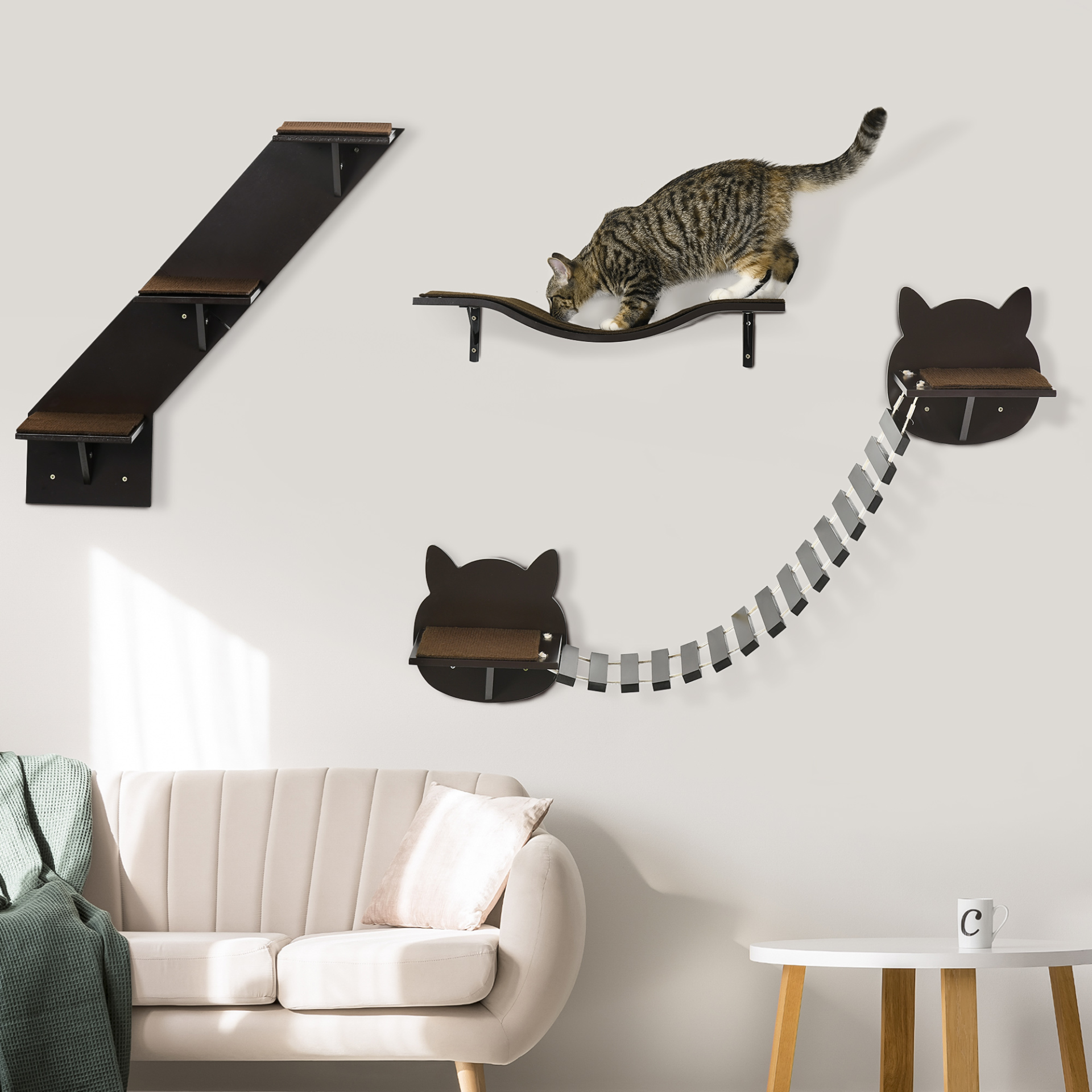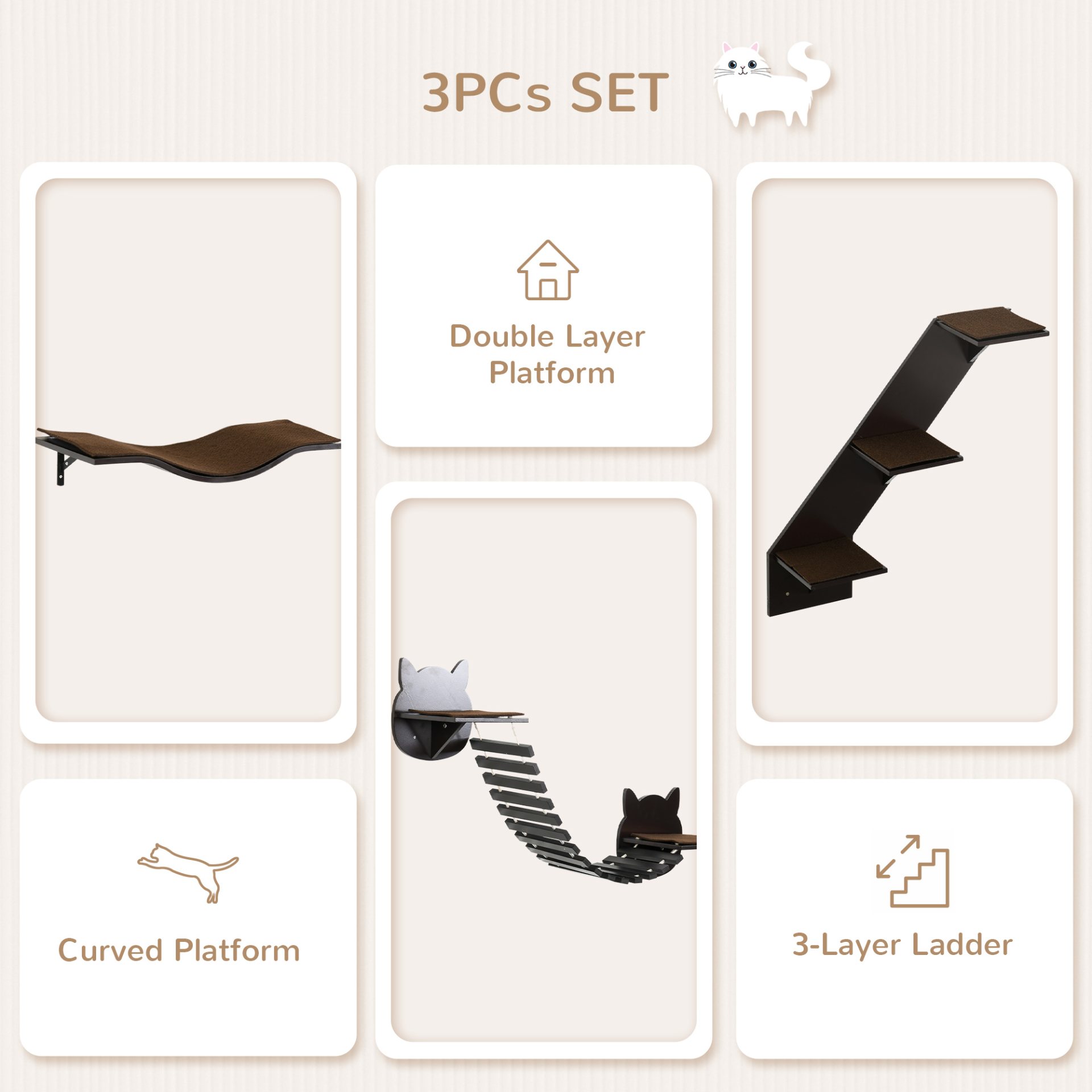 - PawHut 3 PCs Wall Mounted Cat Tree Cat Shelves Climbing Shelf Set, Kitten Activity Centre w/ Jumping Platforms, Ladders - Brown