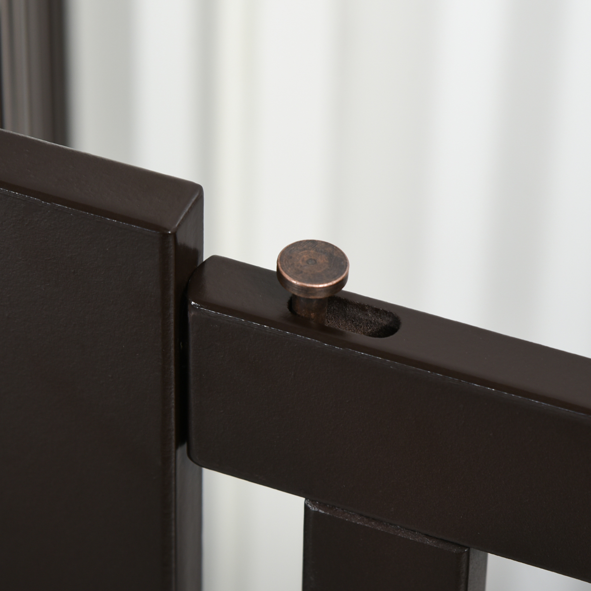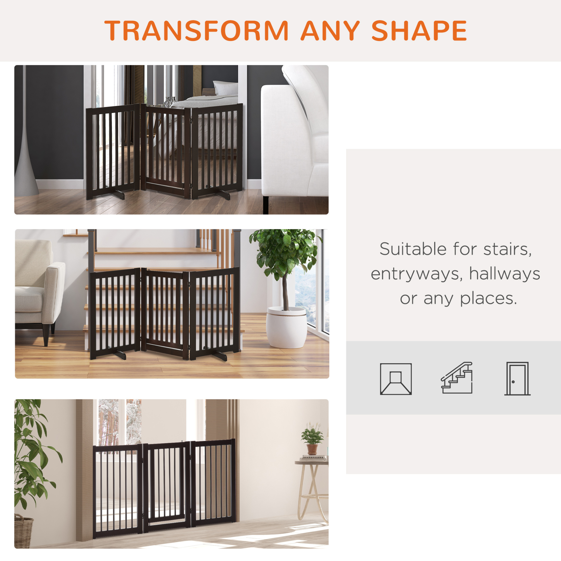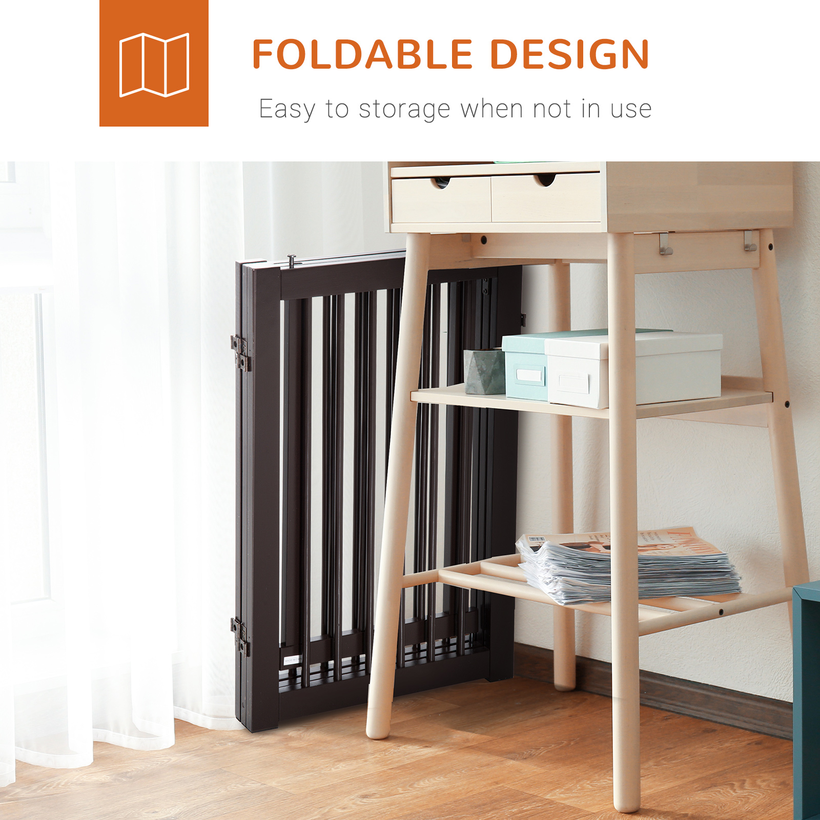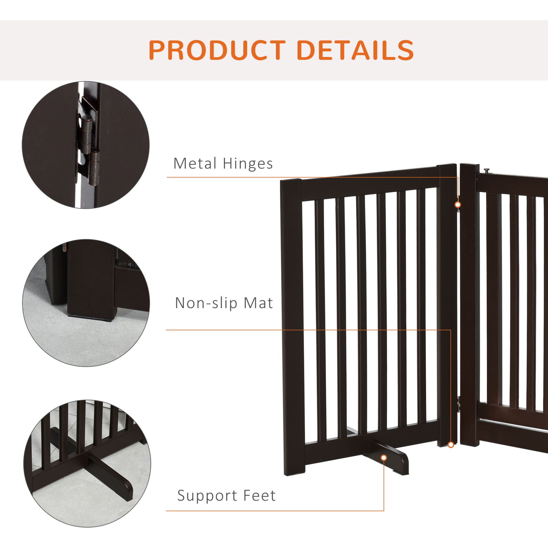 - PawHut Freestanding Dog Gate Wood Doorway Safety Pet Barrier Fence Foldable w/ Latch Support Feet Deep Brown, 155 x 76 cm