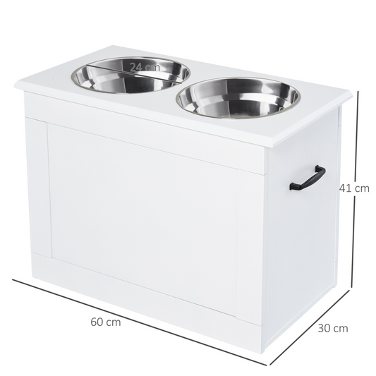 PawHut Raised Dog Bowls Pet Feeding Storage Station with 2 Stainless Steel Bowls Base for Large Dogs and Other Large Pets, White