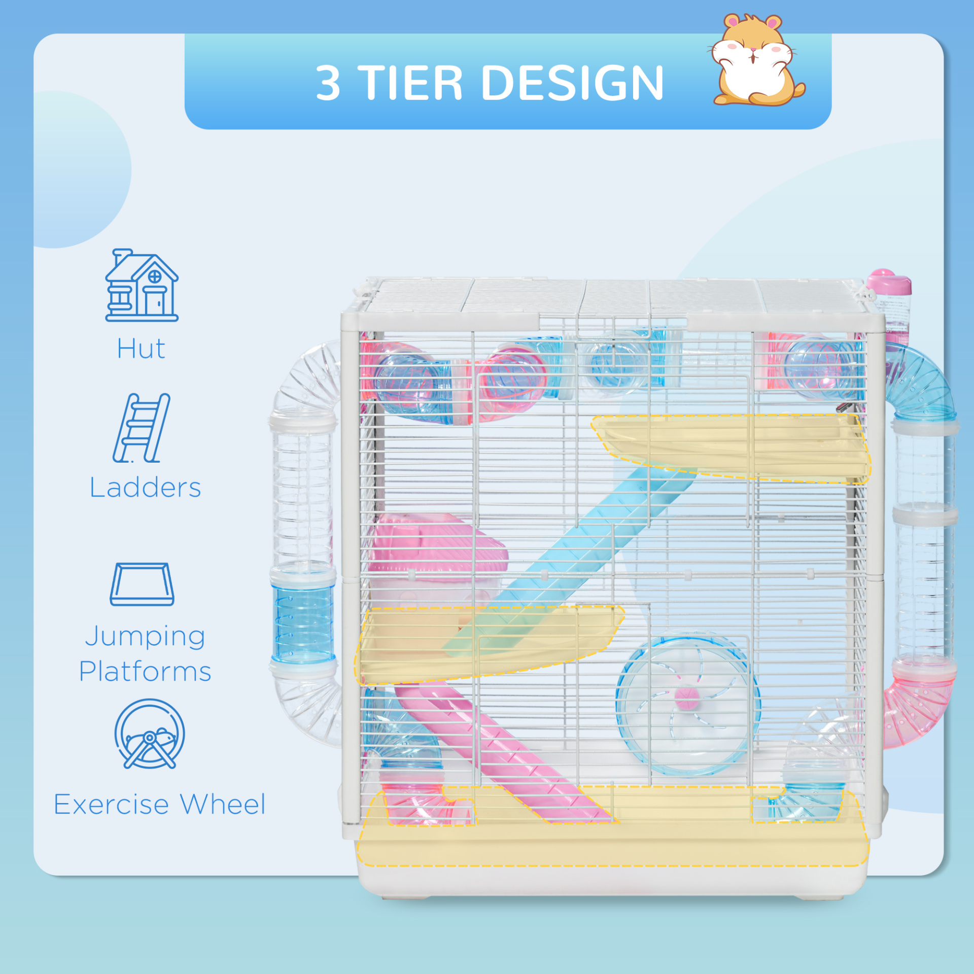 PawHut Hamster Cage, Gerbilarium Cage w/ Tunnel Tubes, Detachable Bottom, Ramps, Jumping Platforms, Hut, Exercise Wheel, Water Bottle, Food Bowl, for Small Rodents, 47 x 29.5 x 53cm