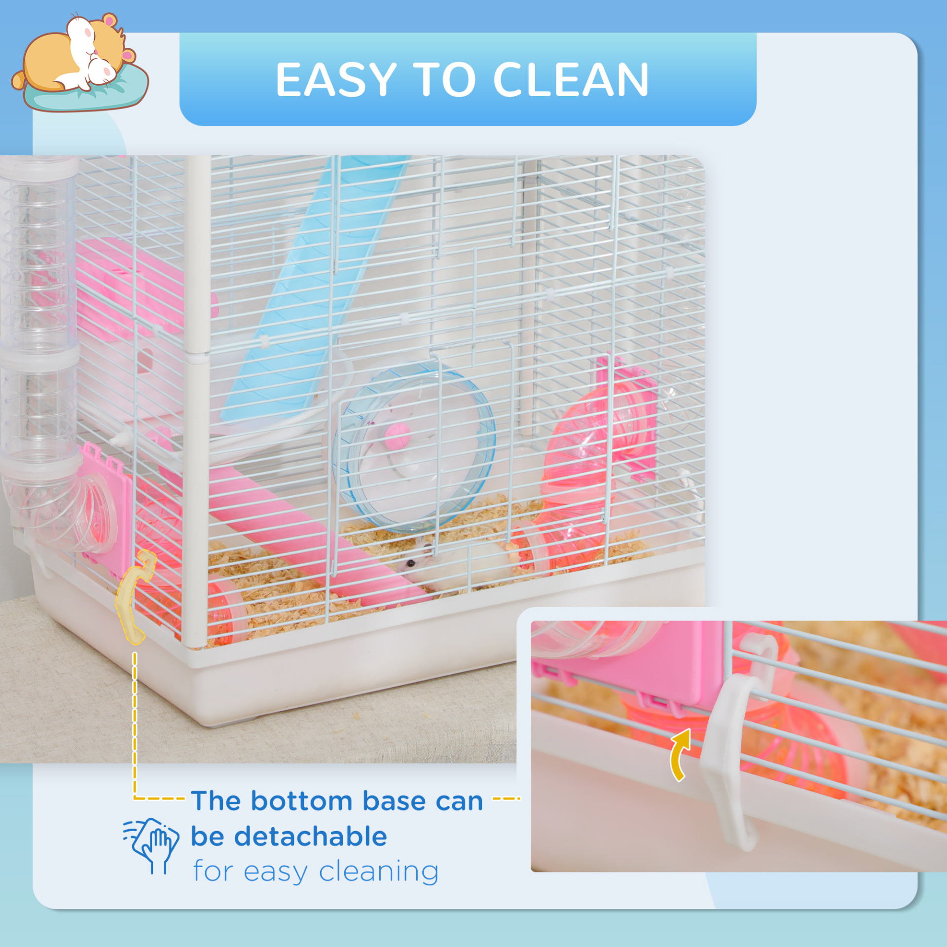 - PawHut Hamster Cage, Gerbilarium Cage w/ Tunnel Tubes, Detachable Bottom, Ramps, Jumping Platforms, Hut, Exercise Wheel, Water Bottle, Food Bowl, for Small Rodents, 47 x 29.5 x 53cm