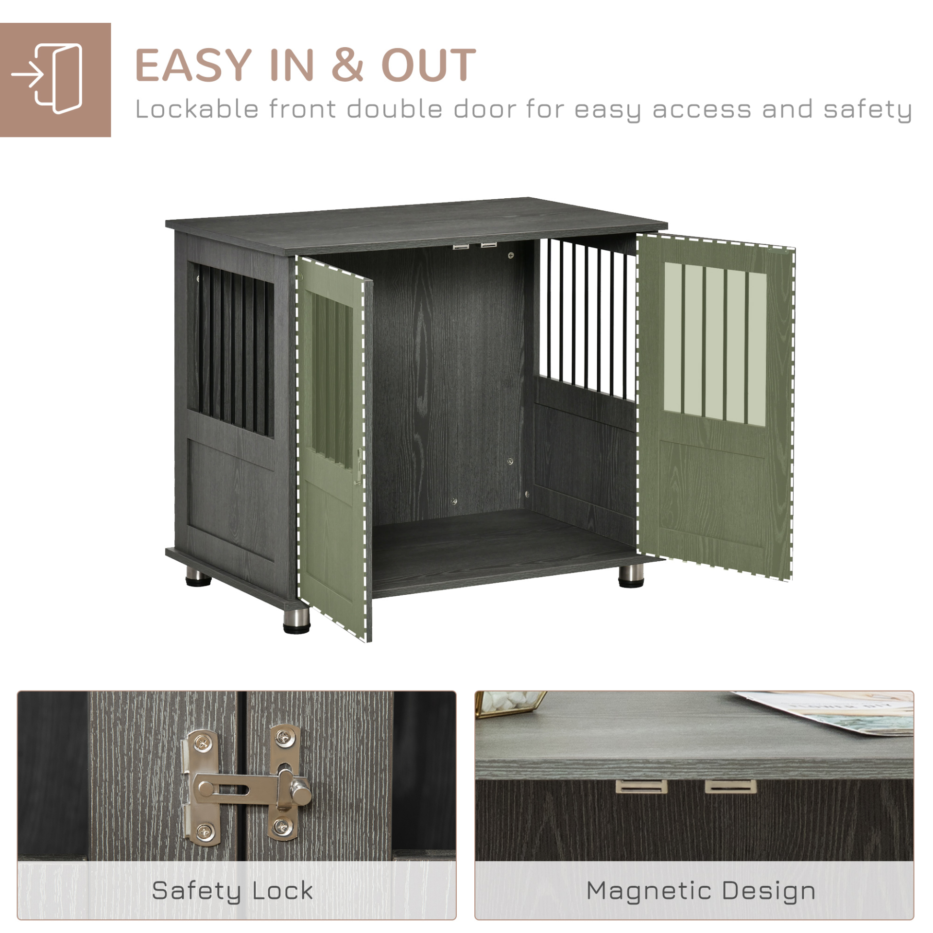 - PawHut Dog Crate Furniture End Table, Pet Kennel for Small and Medium Dogs with Magnetic Door Indoor Animal Cage, Grey, 85 x 55 x 75 cm