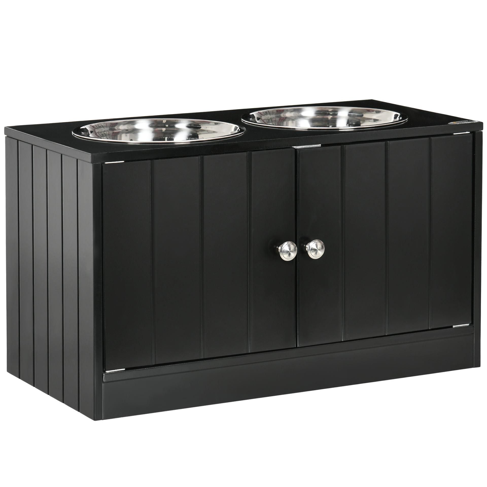 - PawHut Raised Dog Bowls for Large Dogs Pet Feeding Station w/ Stand, Storage, Two Stainless Steel Bowls - Black