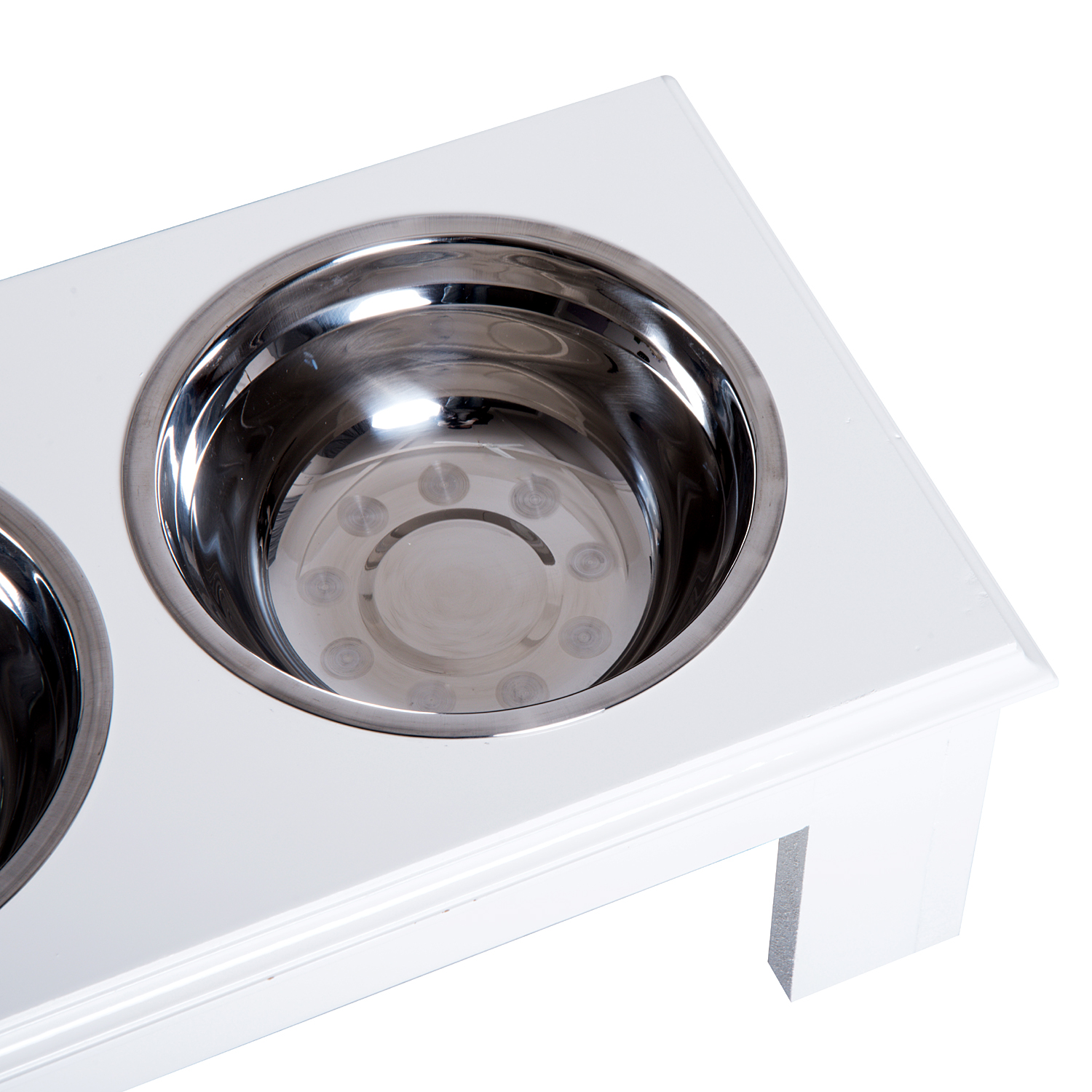 - PawHut Stainless Steel Raised Dog Feeding Bowls with Stand Elevated Twin Pet Bowls Water Food Feeder 43.7L x 24W x 15H cm - White
